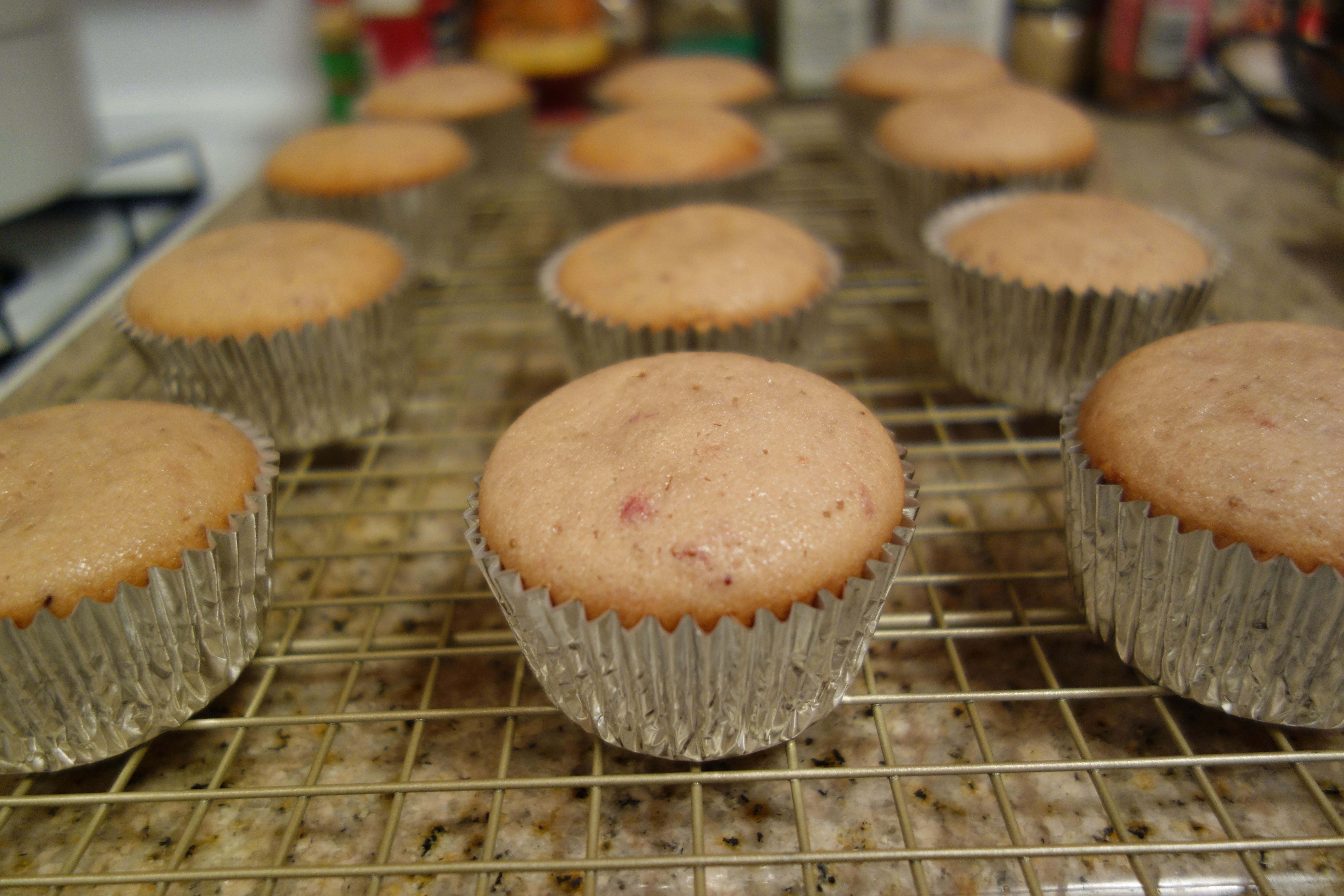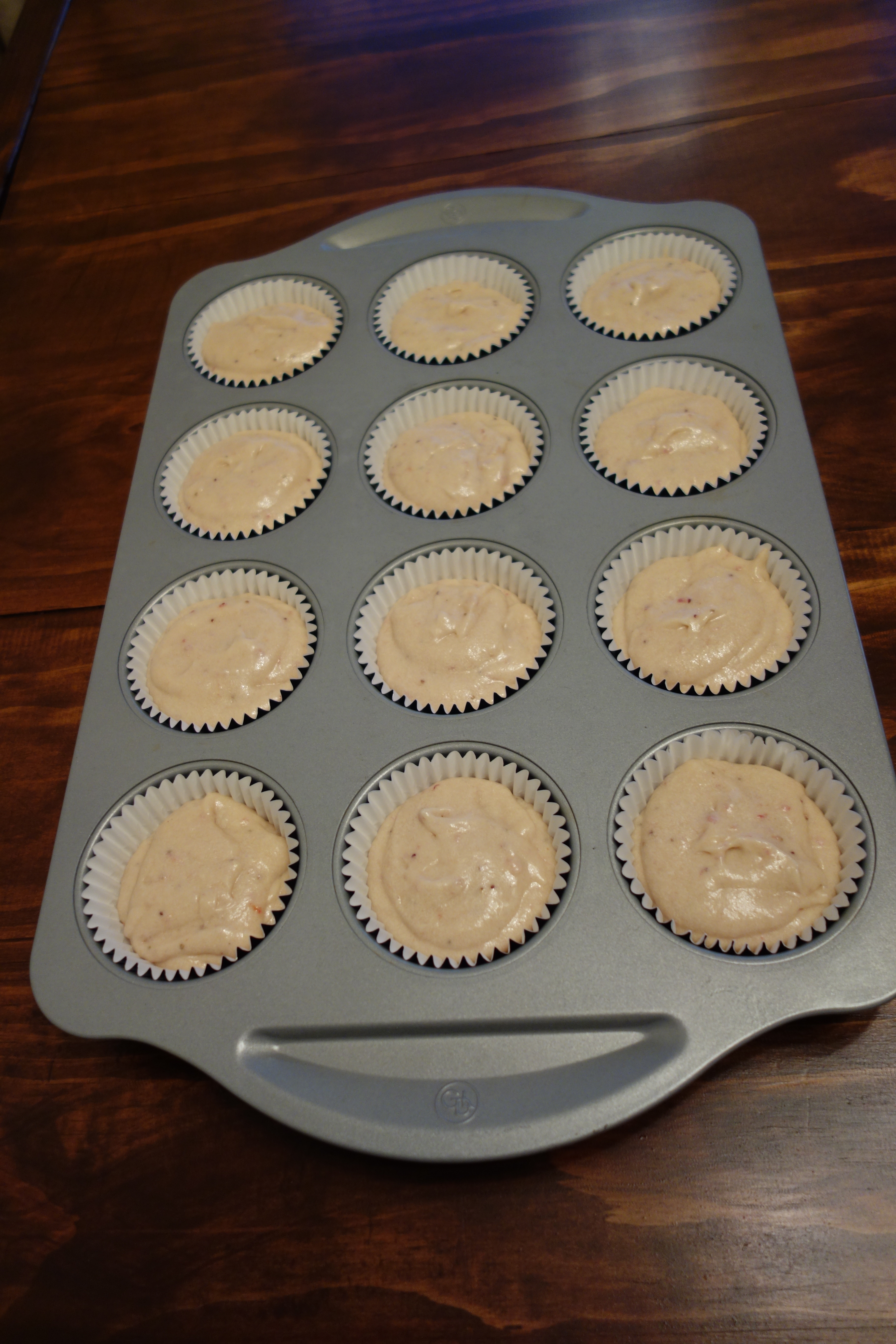 Line a cupcake tin with cupcake liners. Fill the liners about 3/4 full with batter.