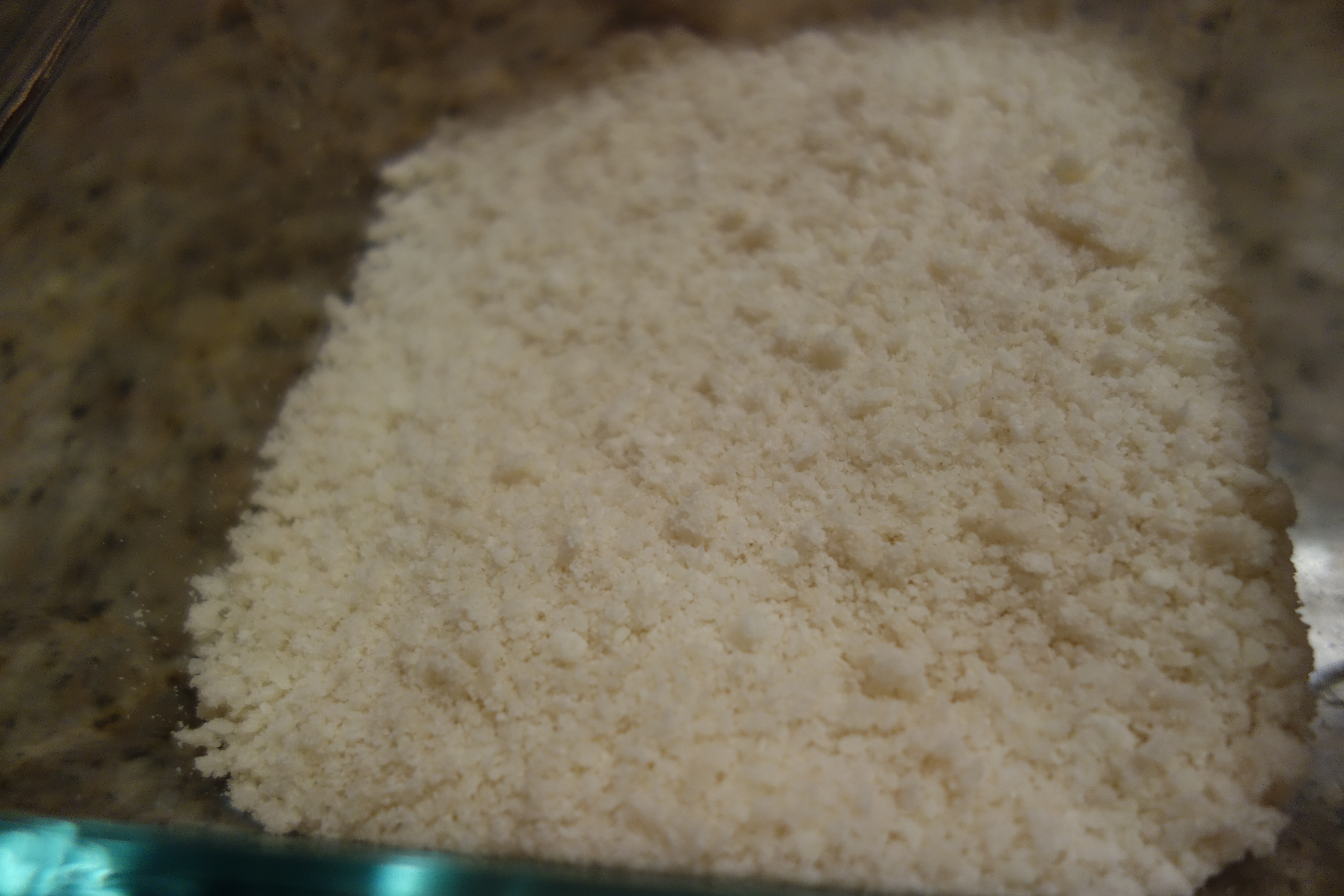 Mix the bread crumbs with the parmesan in a bowl. I suggest using panko breadcrumbs, which are a little larger and crunchier than plain breadcrumbs.