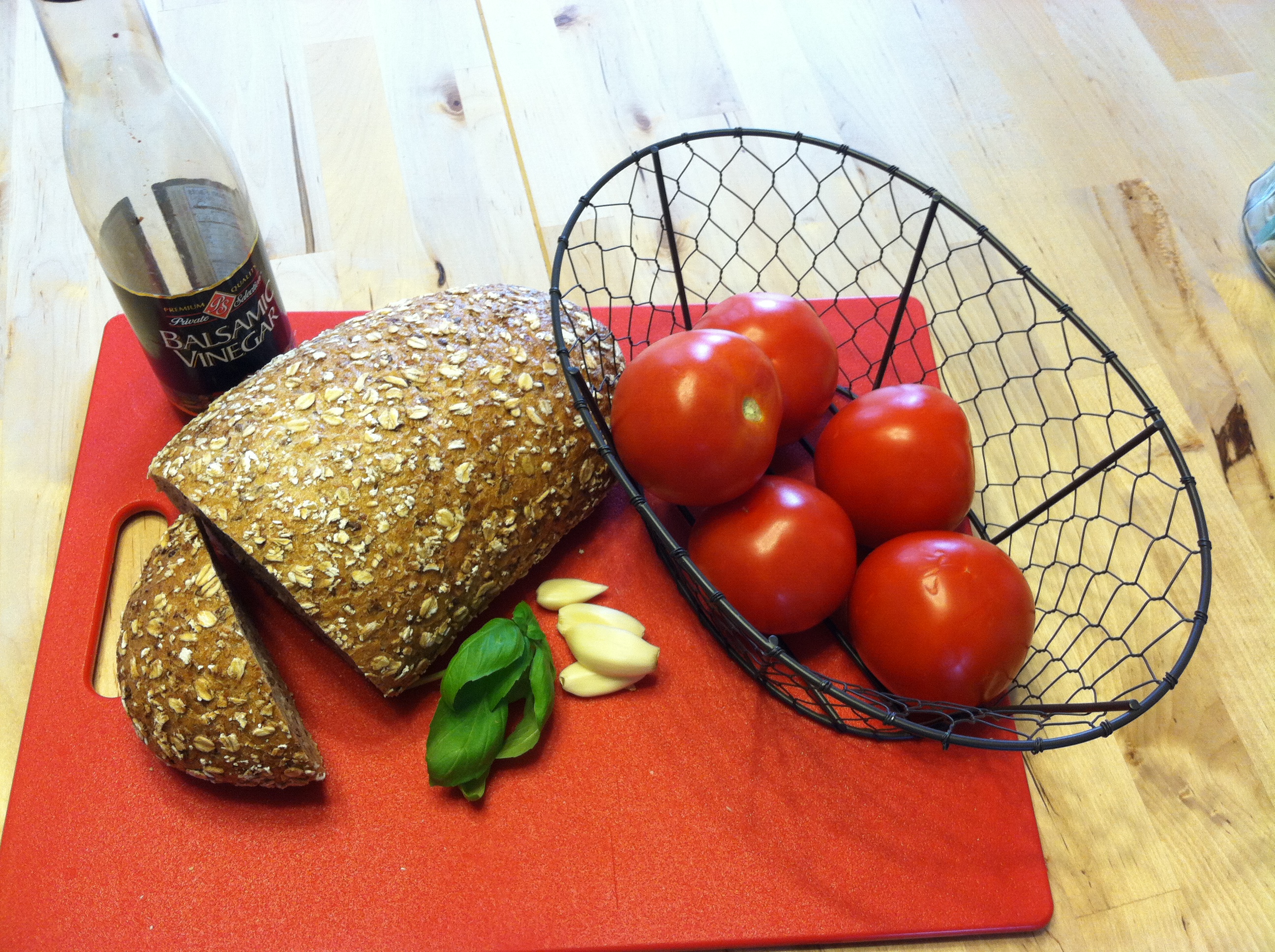 Preheat oven to 400 degrees. Place bread slices on baking sheet and brush both sides with olive oil. Toast bread for 10-15 minutes until golden. You could also grill the bread for a more rustic flavor. I used a hearty mill bread because I hate it when the juice from the tomatoes makes a flimsier bread soggy (and no one wants that).