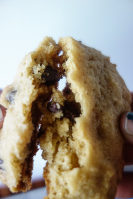 Look at this. Melted chocolate chips. Hot chocolate chip cookies are the best.