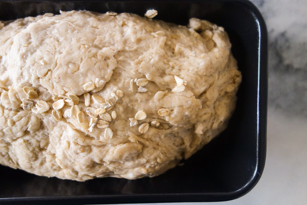 Bake the bread for around half an hour or until it is lightly browned. I sprinkle a few oats on the top before baking.