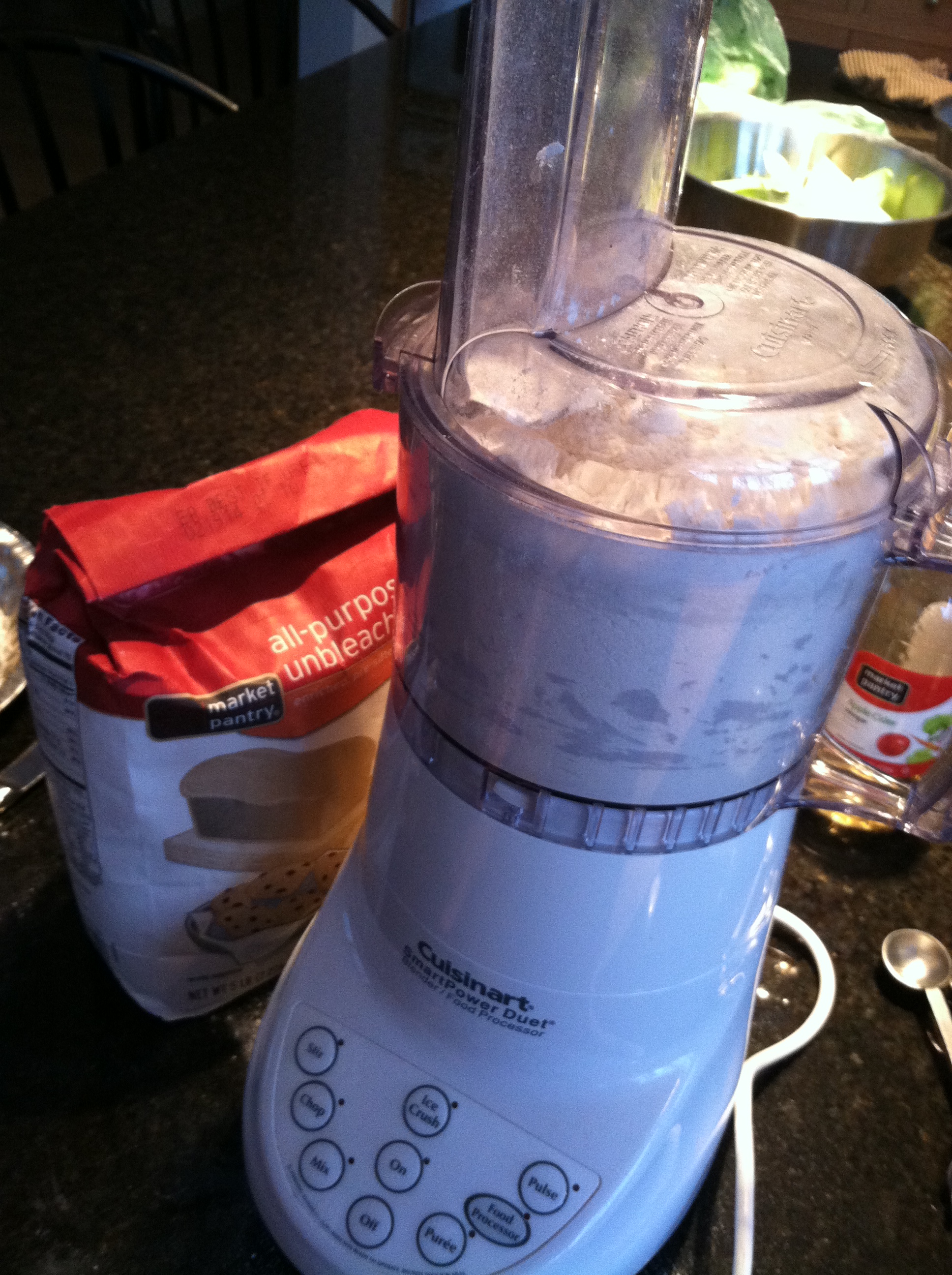 - drizzle in water and vinegar mixture while pulsing until dough just holds together